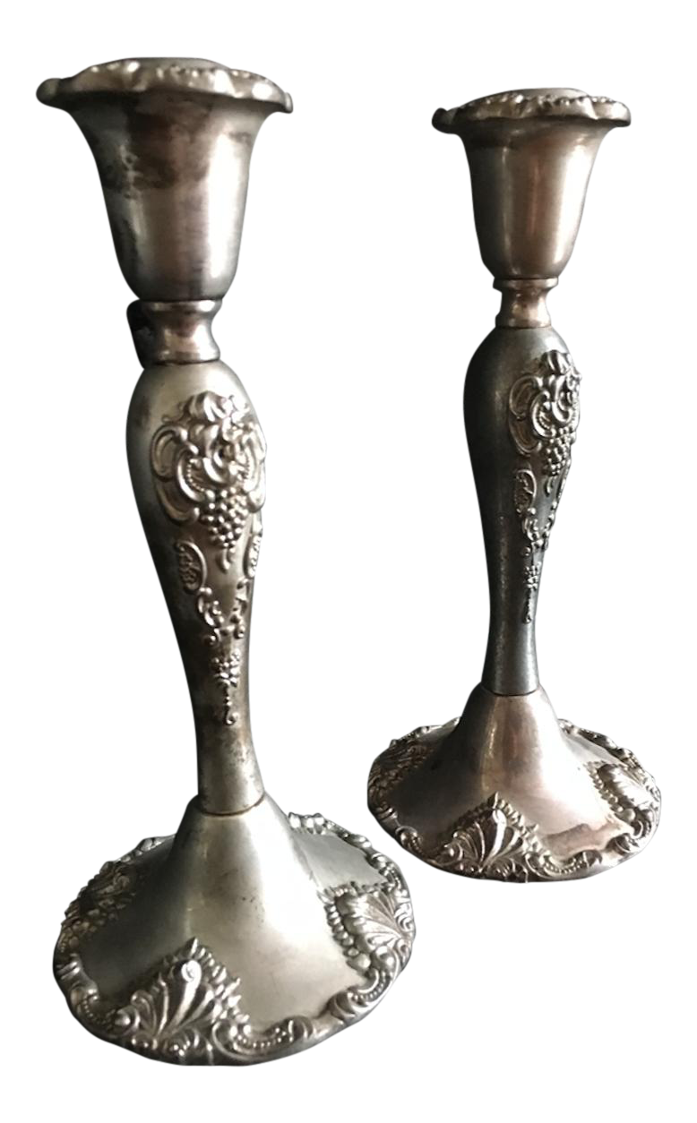 Vintage godinger silver plate grape pattern candle holder, set of 2, 4 $27.00.